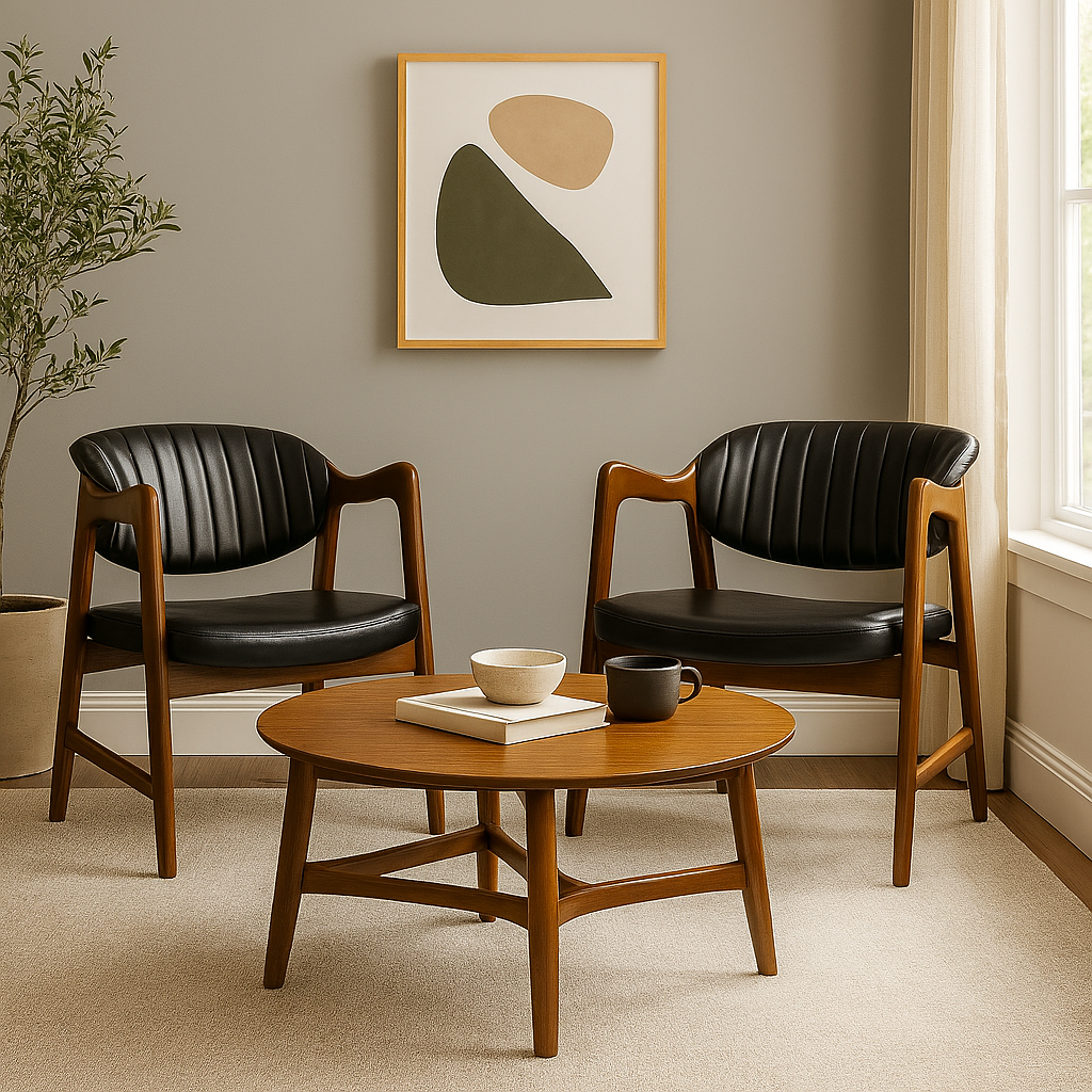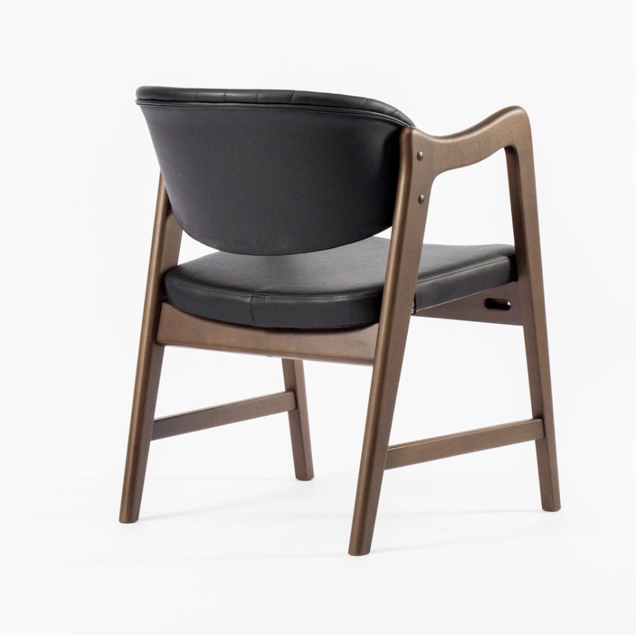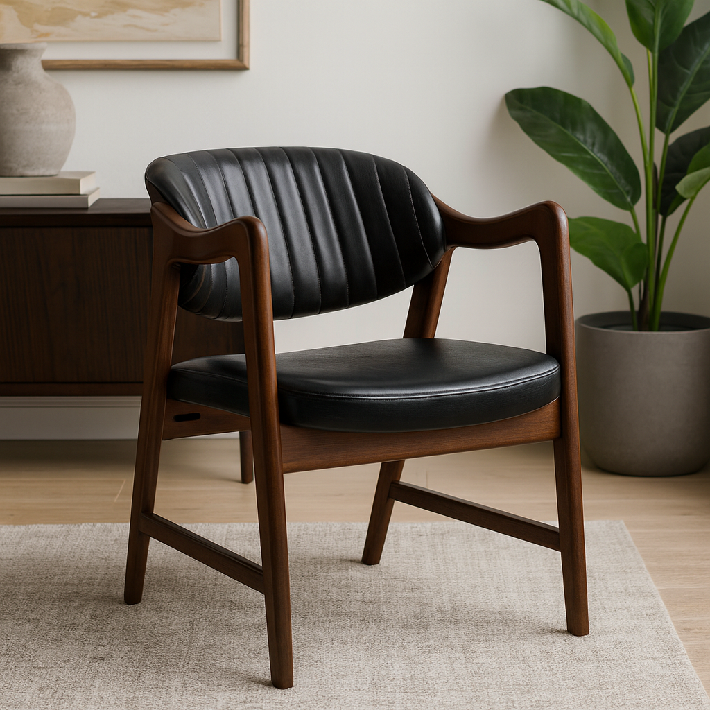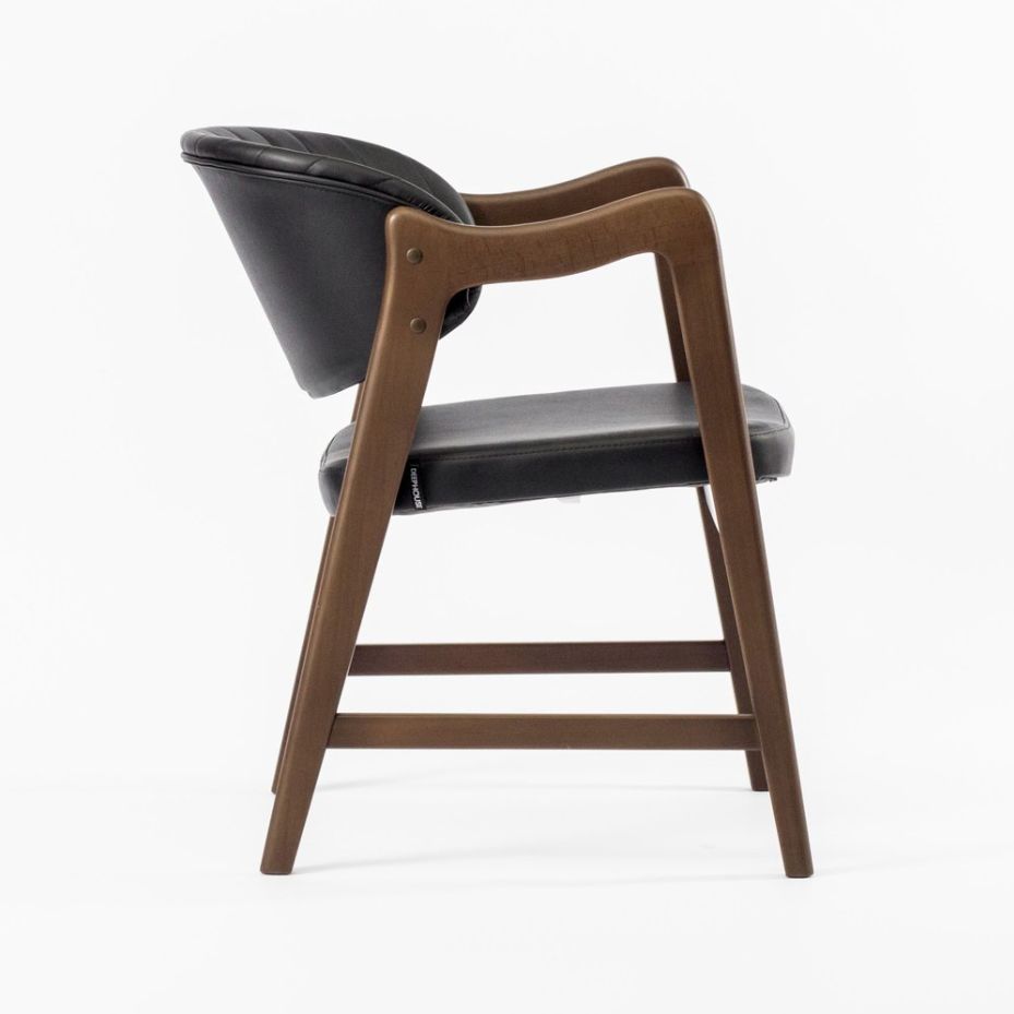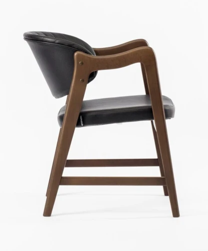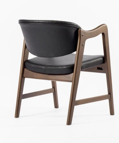 Сиденье: широкое и мягкое, также обтянуто чёрной экокожей, идеально сочетается с текстурой дерева.