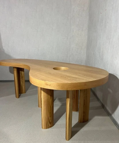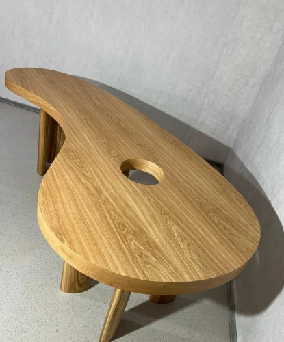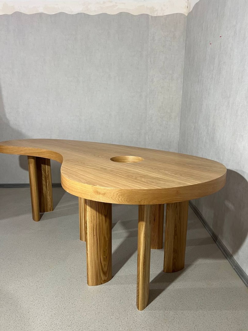 Стол «Авокадо» — это не просто предмет интерьера, а дизайнерское высказывание. Его органичная, плавная форма вдохновлена силуэтом авокадо, что придаёт пространству мягкость и визуальный ритм. Столешница выполнена из натурального шпона, подчёркивающего текстуру древесины и создающего ощущение тепла и уюта.