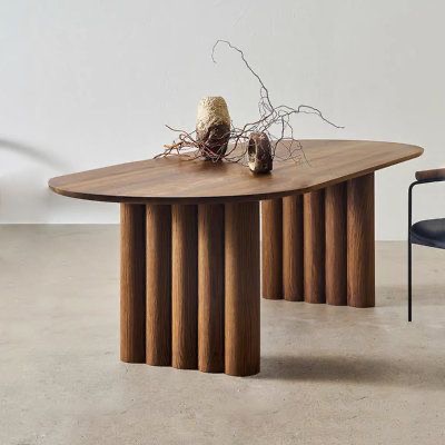 Стол Маурицио овальный — это воплощение современного минимализма с теплотой натуральных материалов. Изготовленный из высококачественного шпона, он демонстрирует изысканную текстуру дерева, придающую интерьеру уют и благородство. Уникальное основание из вертикальных ламелей делает стол не просто функциональным предметом, а выразительным дизайнерским акцентом.