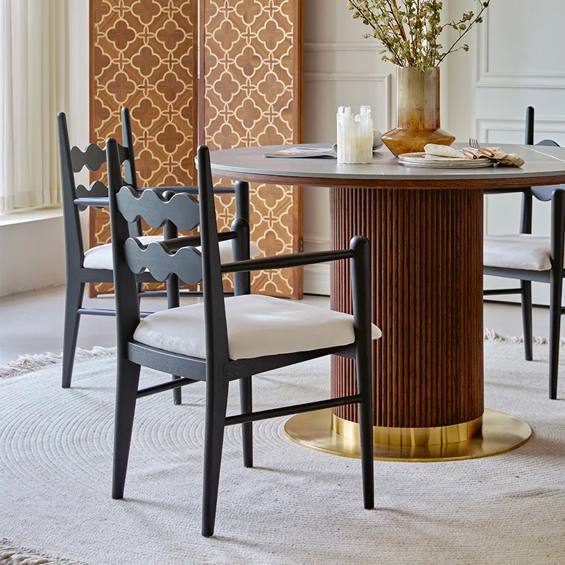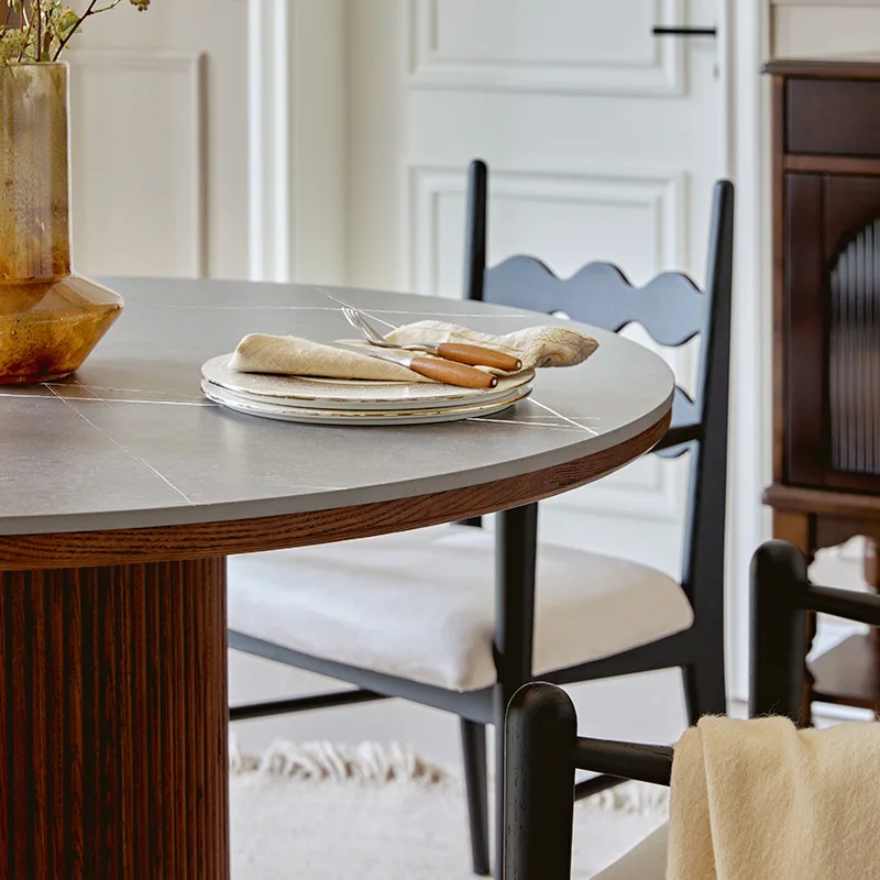 Погрузитесь в атмосферу утончённого дизайна с круглым столом «Стамбул». Его гладкая эмалированная столешница подчёркивает минимализм и чистоту форм, а основание из вертикальных реек, покрытых натуральным шпоном, добавляет текстурную глубину и архитектурный акцент.