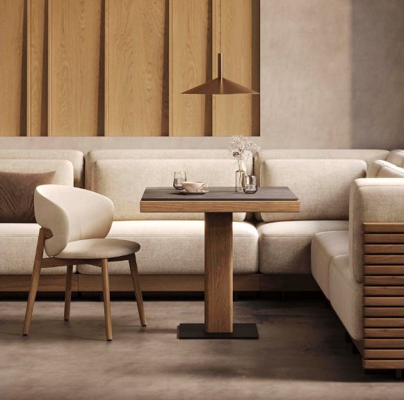 Каркас: основание из массива, облицованное шпоном светлого дуба. Тонкие линии, сдержанная геометрия и слегка сужающиеся ножки придают столу лёгкость и визуальную чистоту.