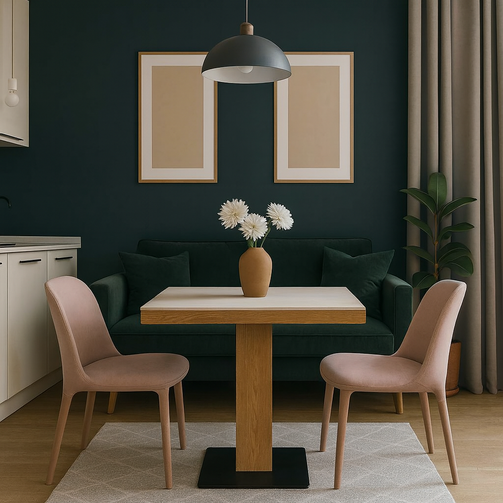 Современный обеденный стол, сочетающий изысканную эстетику и практичность.